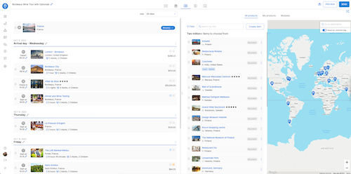The product management system enables you to create the different travel products and services that you then drag-and-drop into your itineraries using the itinerary builder.
