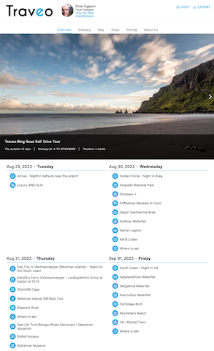 "An excellent tool for efficiently managing and presenting itineraries to customers in a beautiful and practical manner"